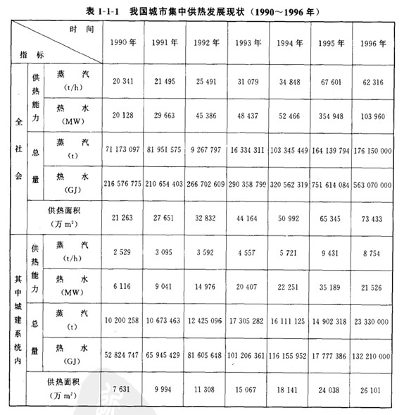 我國城市集中供熱(僅指有集中熱源.通過管通愉送熱煤的傳熱系統)發展很快,詳見表1-1-1。