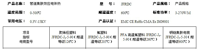 管道集膚效應電伴熱帶內部線纜采用的是RDC恒功率電伴熱帶,具體產品參數(shù)詳見產品中心:管道集膚效應電伴熱帶