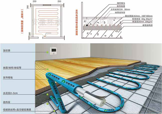 5、發熱電纜電地暖系統使用壽命長,幾乎與建筑物同壽命。所以在選購電地暖系統時一定要找專業的生產廠家,正規的廠家生產的發熱電纜產品質量有保障,且會根據您的實際情況給您設計、選型,相關配件都是配套的,同時,還會提供專業的安裝指導。